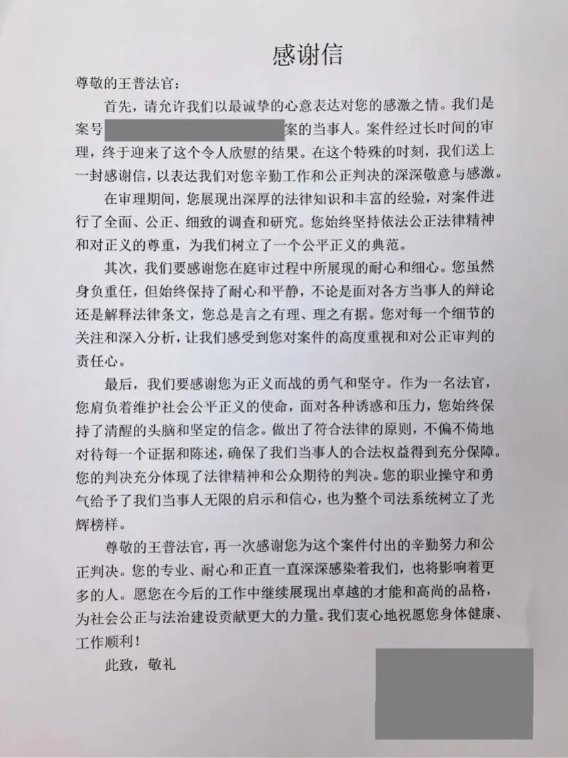 综上,法院最终判决驳回小美的诉讼请求。事后,小美姑姑送来锦旗和感谢信,感谢法院判决让小美父亲得以继续在房屋内度过安宁晚年。