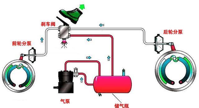 气刹每踩一次刹车就得消耗一部分高压空气,所以气刹系统的车上都带有气泵,连着发动机,只要发动机转动它就一直打气。气多了就通过泄气阀排气,这对于家用车来说有点浪费了。